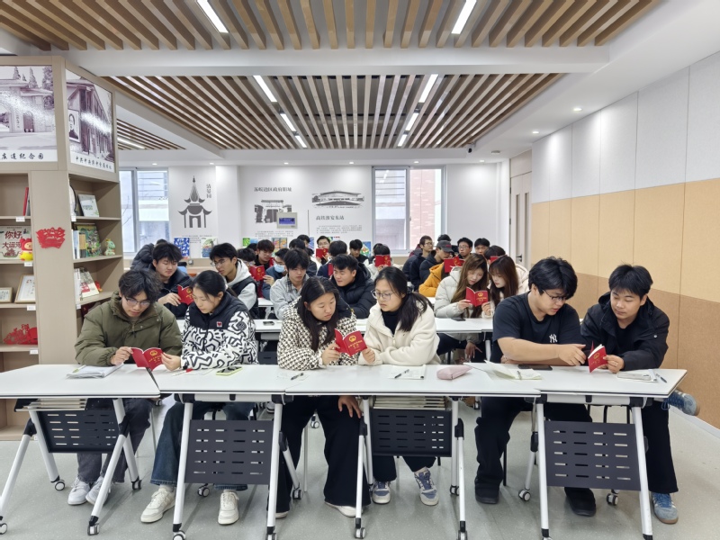 为深入学习贯彻宪法精神,提升青年学生法治素养,近日,智能制造学院组织全体团学骨干,在学生社区文史驿站开展“宪法晨读”活动,让宪法精神在晨光中浸润初心,在诵读中筑牢信仰。